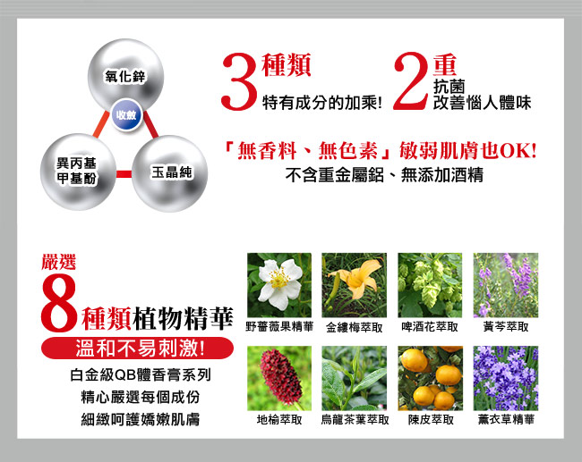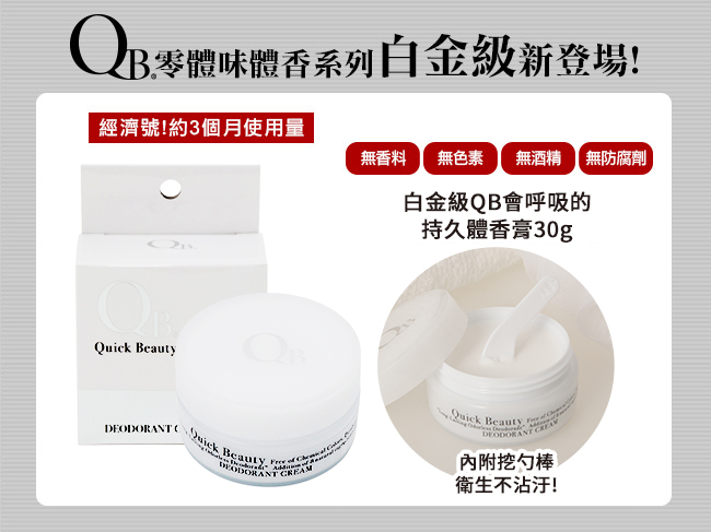 【白金級QB】集中抗異味持久體香膏30g(腋下、足用)