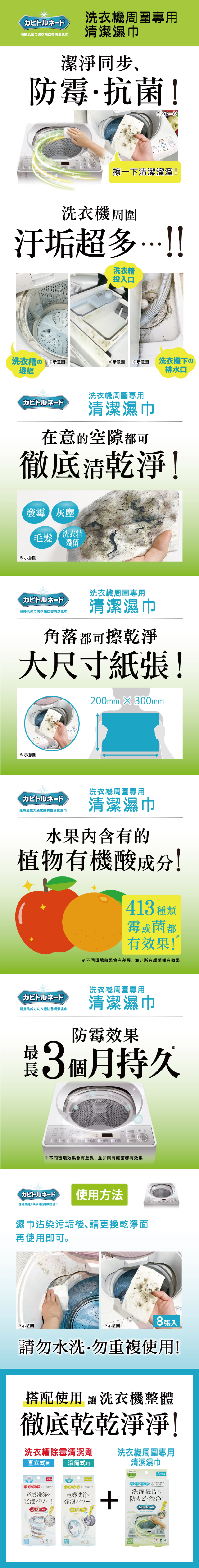 【KT】 龍捲風威力洗衣槽防霉清潔濕巾 8枚